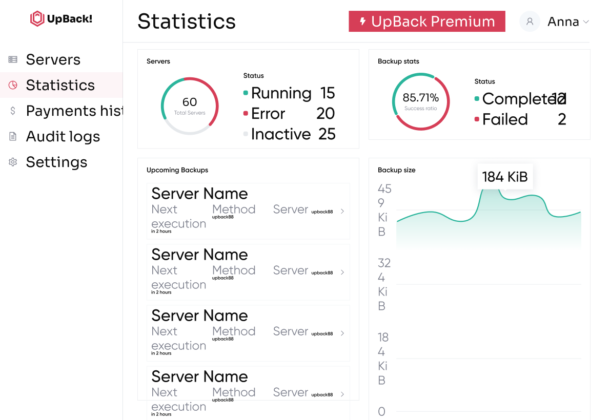 Stay on top of your data with UpBack!'s detailed backup statistics